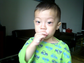 The supreme authority who is my mother was definitely happy to have her little grandson visit her for the first time. He even called her "popo" which of course gave him extra brownie points. Unfortunately contact between the two were mostly verbal because Mountain Boy didn't allow Popo to carry for some reason, so no pictures.